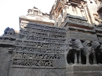 Ellora have buddhist, Hindu and Jaina Caves, all the caves are rock cut architecture, total 34 caves in which 1-12 Buddhist (1500 years old), 17 hindu caves(1200 Years old), 5 Jaina caves (800 years old),