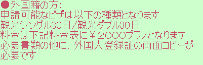 観光ビザ:a.往復航空券 b.ホテル予約確認書 c.日程表